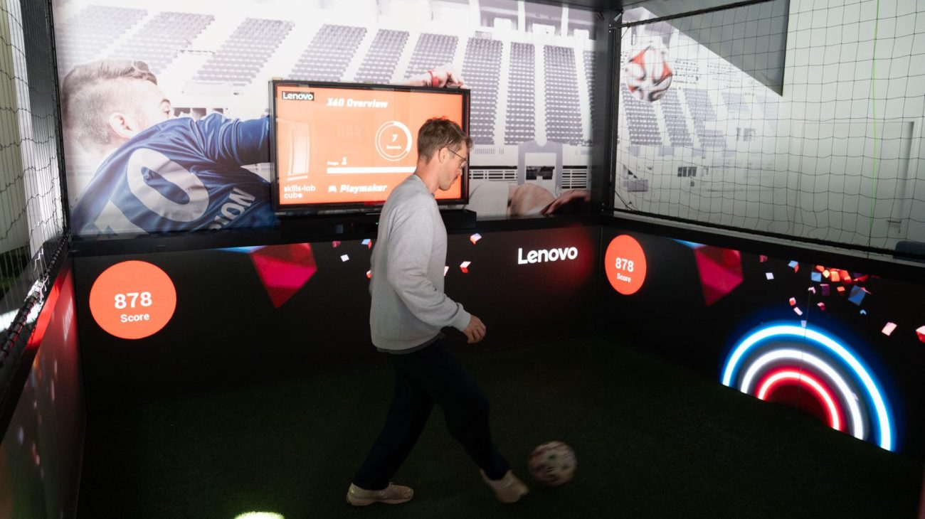 The skills.lab Cube transforms visitors into active participants through immersive 360° football skill challenges. By combining real ball interaction, gamification, and competition formats, it increases dwell time, encourages repeat participation, and creates stronger emotional brand connections.